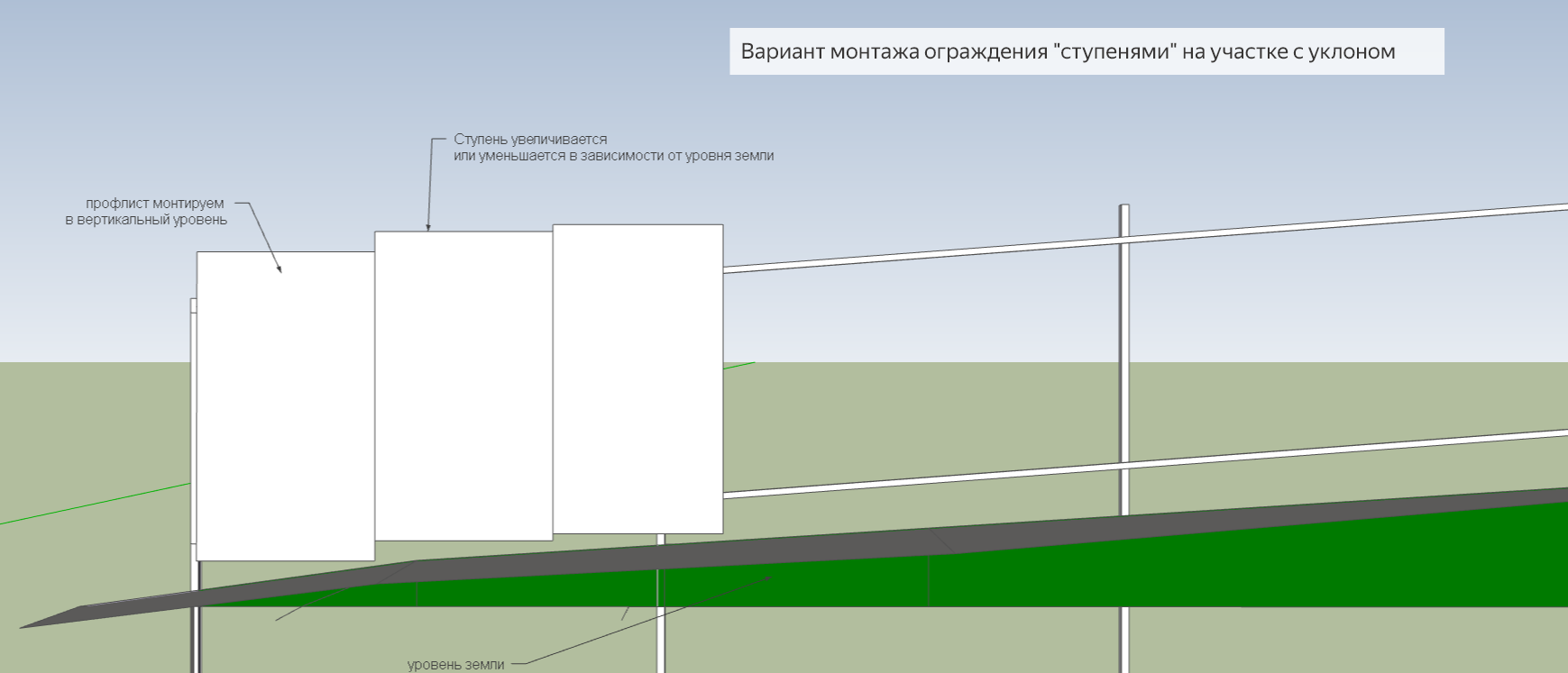 При выборе ограждения и типа покрытия ограждения необходимо учитывать особенности рельефа вашего участка.